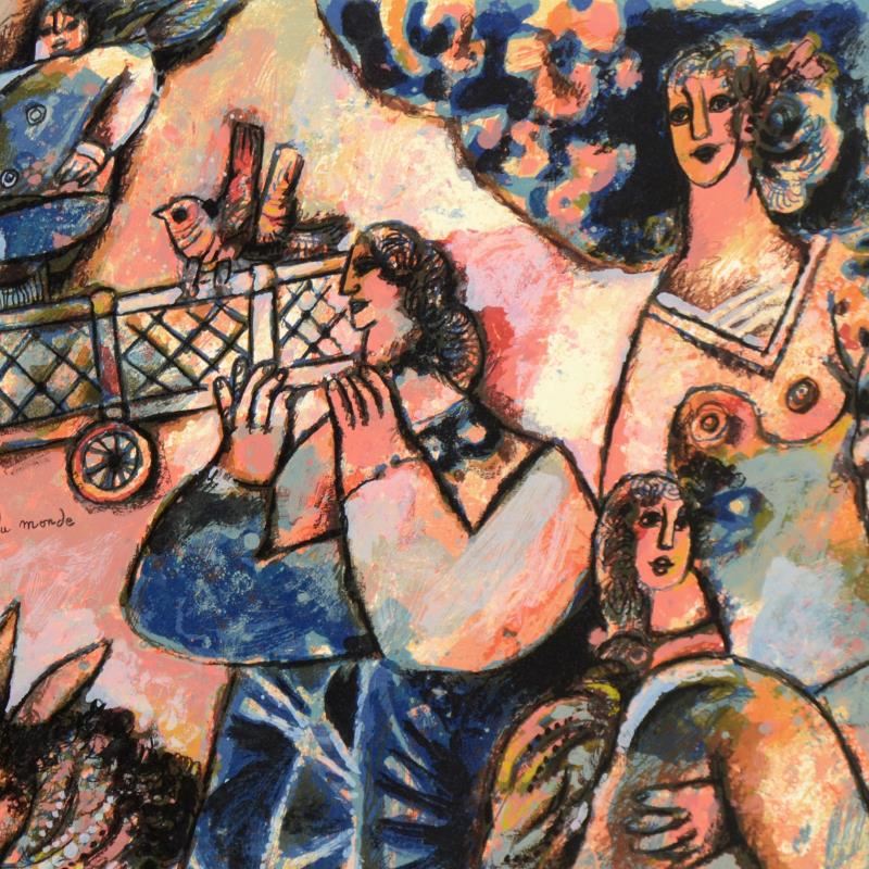 "Les Premiers Matins du Monde" is a limited edition lithograph on paper by Theo Tobiasse (1927-2012), numbered and hand signed by the artist. Includes Letter of Authenticity. Measures approx. 30" x 22" (border), 28.5" x 21.5" (image).