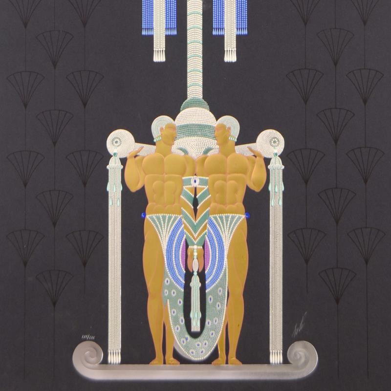"Les Pretresses" is a limited edition serigraph on paper by Erte (1892-1990), numbered and hand signed by the artist. Includes Certificate of Authenticity. Measures approx. 30.5" x 58.5" (border), 27.5" x 53" (image). Due to the age of this piece and the delicate nature of the paper it may have some slight imperfections.