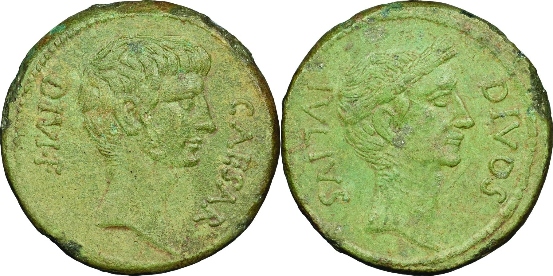 Les Triumvirs Octavianus et Divus Julius Caesar. 38 av. J.C. Sesterce , atelier du sud de l'Italie, AE 17.64 g.