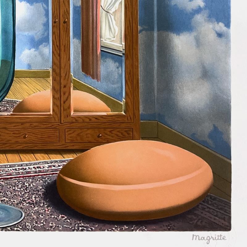 "Les Valeurs Personnelles (Personal Values)" is a limited edition lithograph by Rene Magritte (1898-1967). This piece is numbered 241/300 and bears the dry stamps of the Magritte Foundation & ADAGP (Society of Authors in the Graphic and Plastic Arts) and is signed by the President of the Magritte Foundation, Charly Herscovici. This piece comes custom framed. Includes Certificate of Authenticity. Measures approx. 36.5" x 29" (frame), 30.5" x 23" (image). This item requires special handling and may have a longer than usual turnaround.