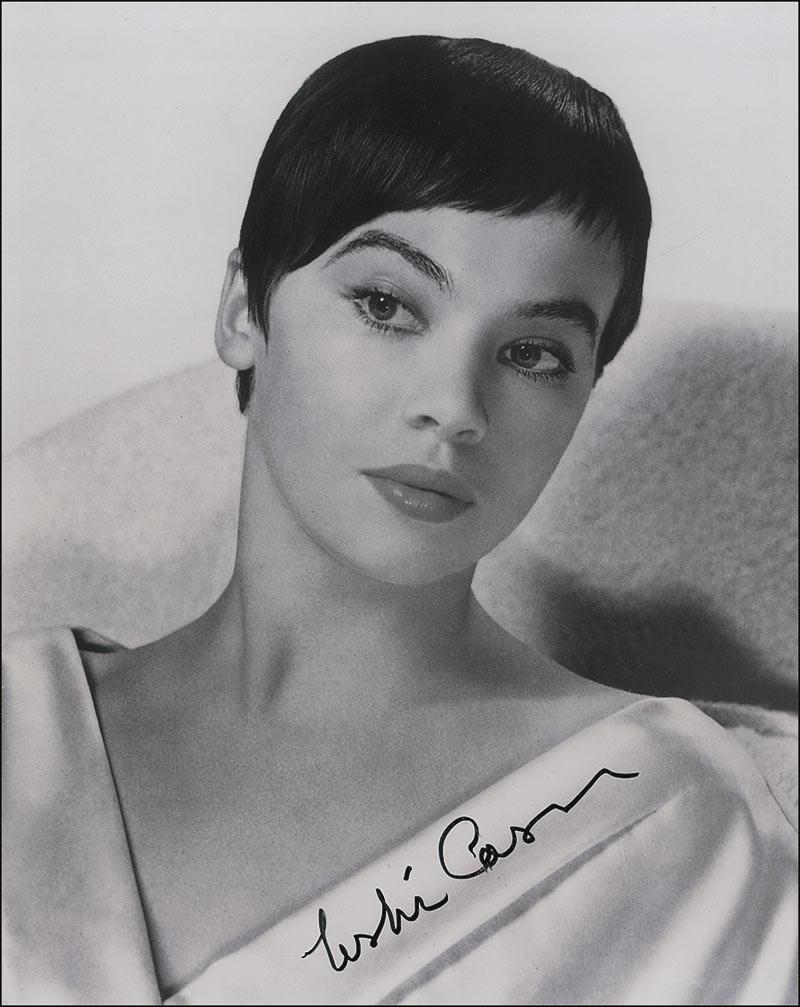 Two different glamorous glossy 8 x 10 photos of Caron, including one in fishnets, each signed in black felt tip. In very fine condition.