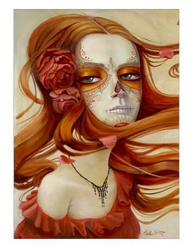 Artist: Leslie DittoTitle: RoseMedium: GicleeSignature: Signed and numbered by artistEdition: Numbered 75Image size: 16 5/8" x 12"Sheet size: 18" x 14"Condition: Excellent * Biography * Leslie Ditto. As far back as I can remember I have always been drawn to self expression through visual arts. I spent many summers helping my father there at the shop and watching him build Harley motorcycles from the ground up and then painted the gas tanks ( and anything else he could find on the motorcycle) with fantasy images that were inspired by such artist as Franzetta and Boris Valleo. I then became fascinated with the beautiful, powerful and sexy women that these artist created. * * Over the years I researched techniques of the “Old Masters” such as Leonardo DA Vinci, Rubens, Raphael, and Rembrandt. I fell in love with the technique of glazing transparent oil color over a neutral colored under painting. With strong influences from fantasy artist, surreal artist, and the “Old Masters”, I create disturbingly beautiful oil paintings that interpret to the viewer my deep emotions that are conceived from my views of current social, political, and religious dynamics. My ideas come to me in an organic fashion. Starting with a seed of a simple idea and growing into many complex symbols and images. My main goal is to capture my audience and bring them to my emotional state in the hopes that my test for an echo will be a success. * * *Information from the artist's website: http://leslieditto.com/?page_id=6 *