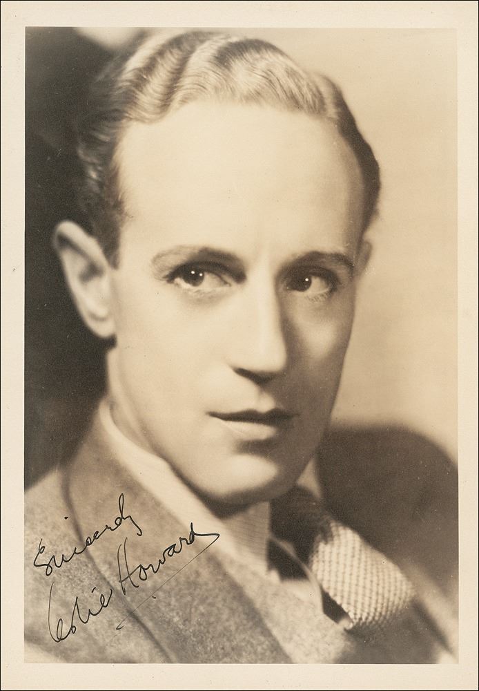 Vintage sepia matte-finish 7 x 10 head-and-shoulders photo of Howard in a jacket and tie, signed in fountain pen, "Sincerely, Leslie Howard." In fine condition, with some mild edge rippling.
