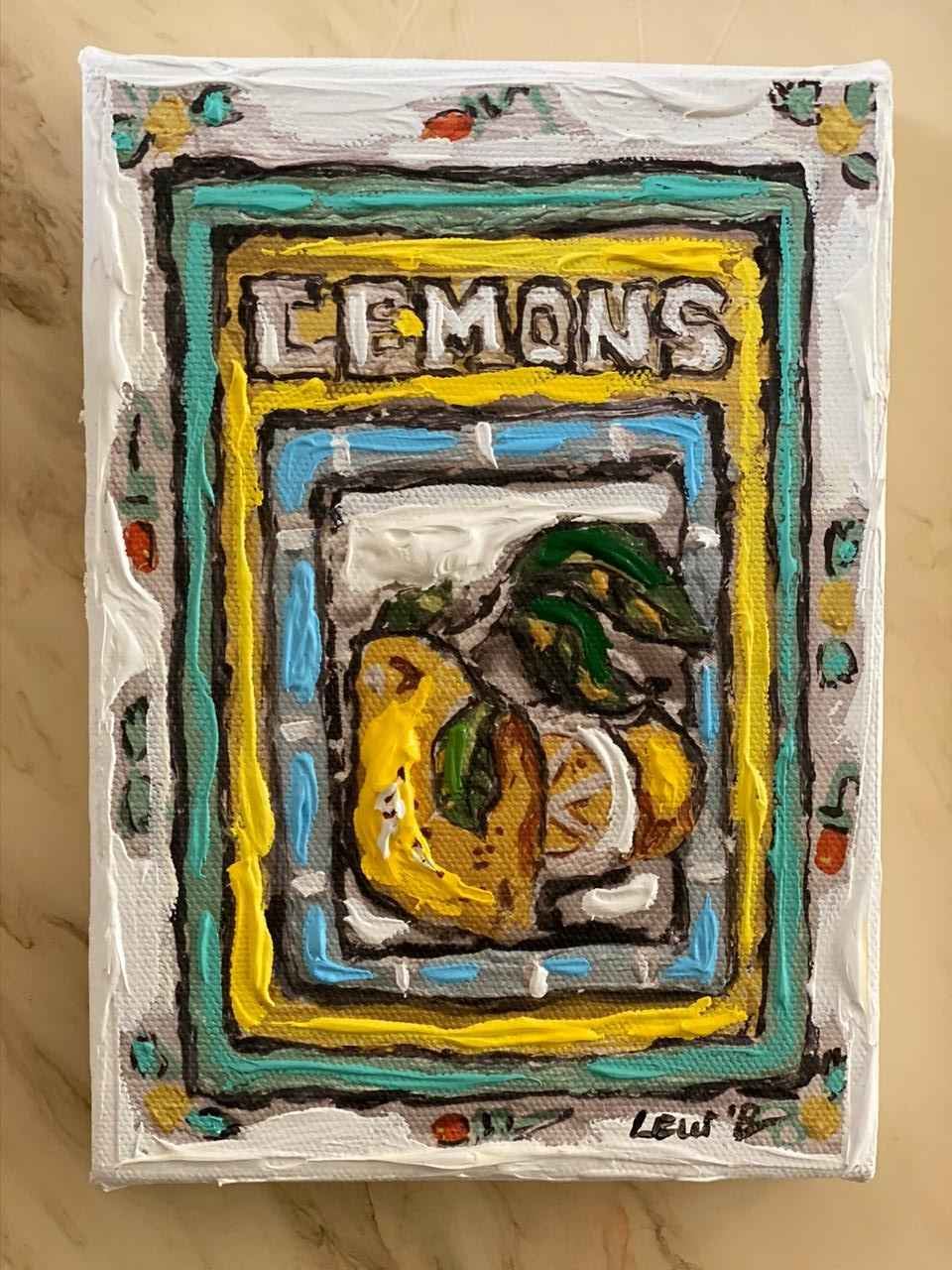 Leslie Lew "Lemons #8" Original Sculpted Acrylic Monotype Dimensions: 7 x 5 Inches