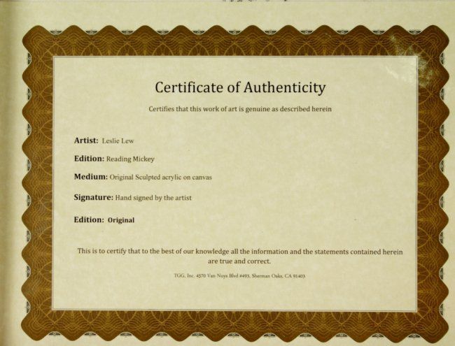 Leslie Lew, Original Sculpted Oil, Reading Mickey