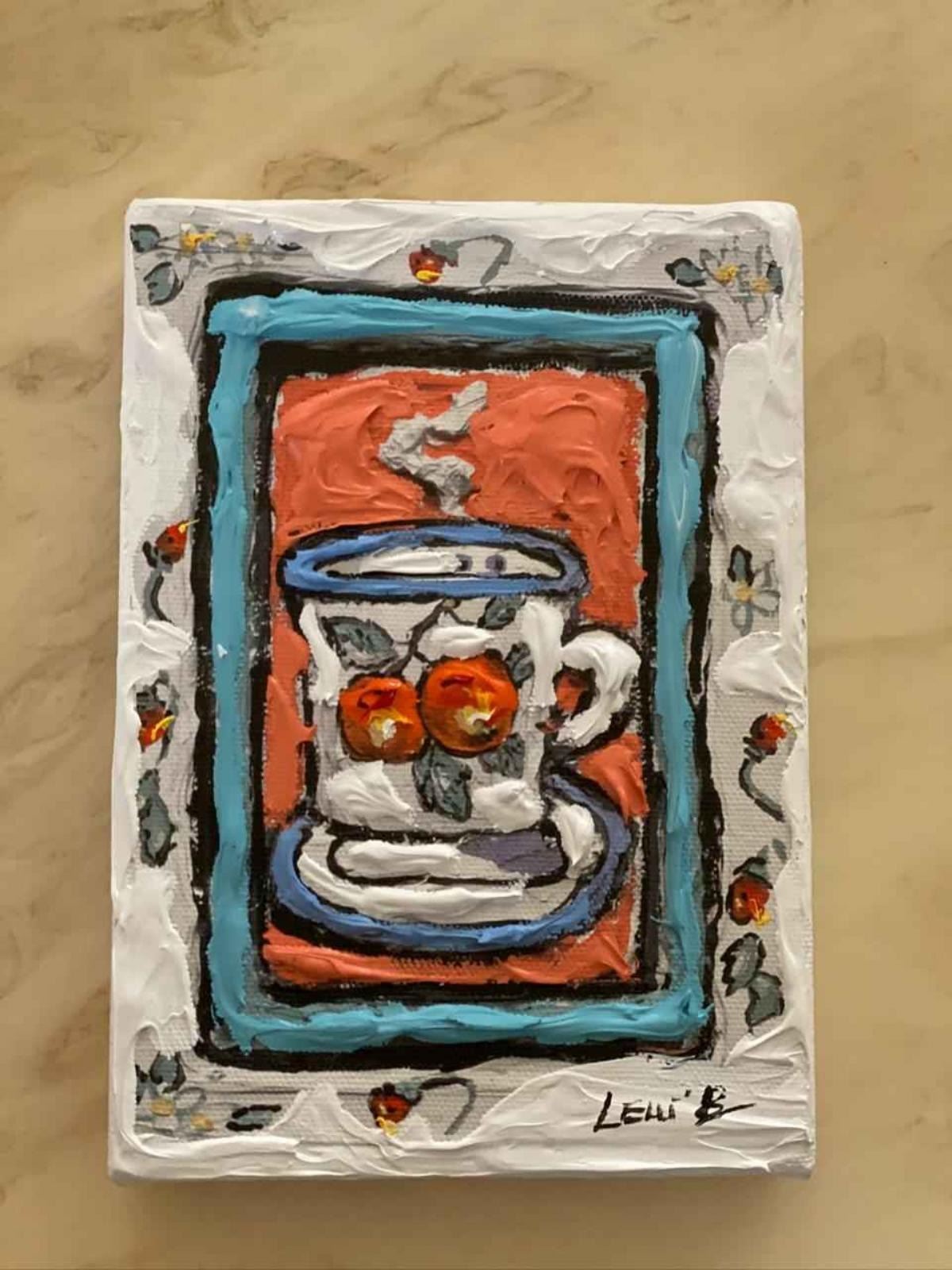 Leslie Lew "Peach cup #3" Original Sculpted Acrylic Monotype Dimensions: 7 x 5 Inches