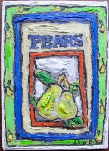Leslie Lew "Pears #2" Original Sculpted Acrylic Monotype Dimensions: 7 x 5 Inches