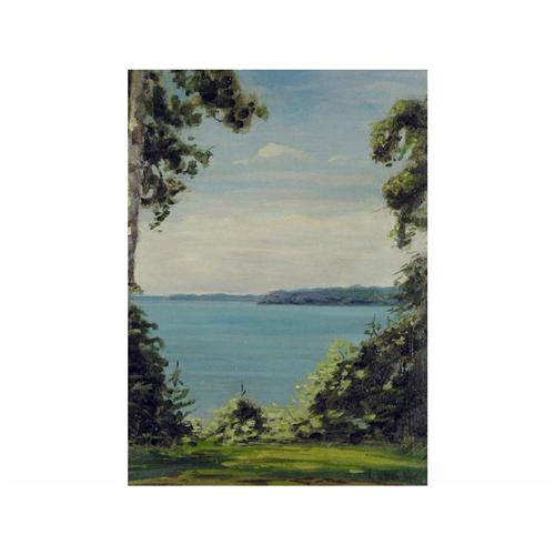 Canadian [1880-1952] VIEW THROUGH THE TREES oil on panel 14 x 10.25 in. (35.6 x 26 cm) signed Note: Unfinished sketch "Spring" verso.
