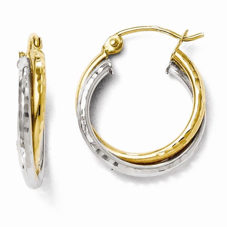 Leslies 14K Two-tone Diamond-cut Hinged Hoop Earrings