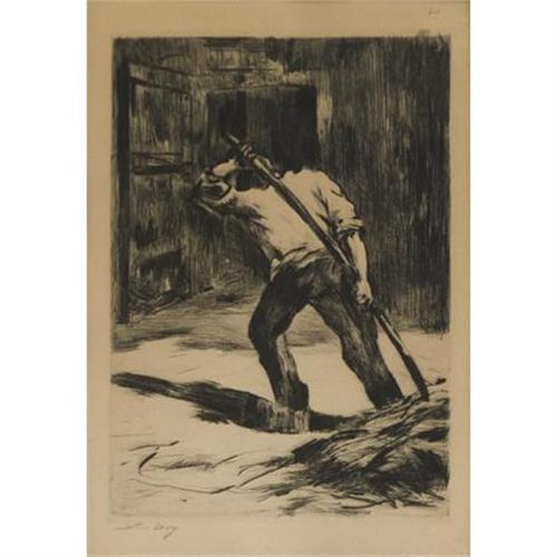 <B>LESSER URY (German, 1861-1931)</B></I><BR><I>Auf den Tenne</B></I>, 1923 <BR>Etching<BR>8 x 5-5/8 inches (20.3 x 14.2 cm)<BR>Ed. 100<BR>Signed lower left: <I>L. Ury</B></I><BR>
