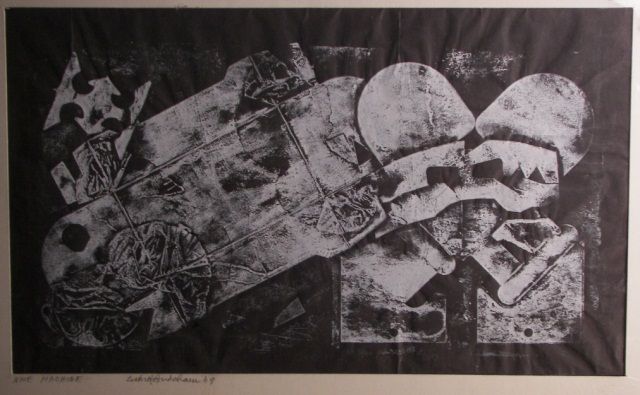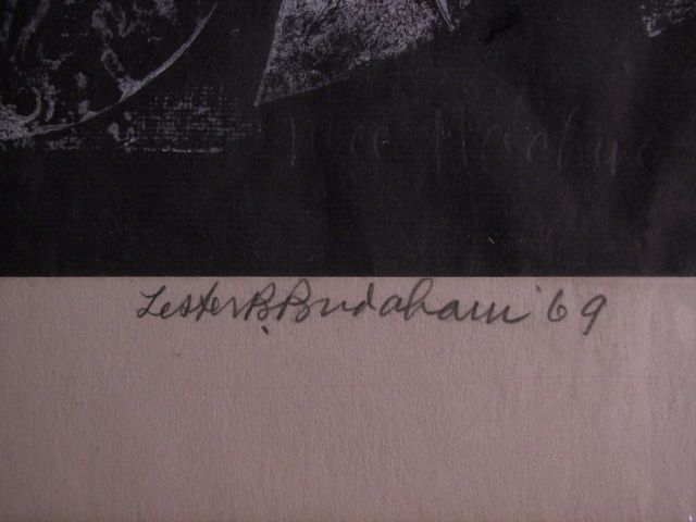 Lester Bridaham,(1899-1992) (8026-B) Lester Bridaham,(1899-1992) Block print, " Nice Machine", 15" x 25", Signed Bottom Center, '69,