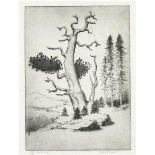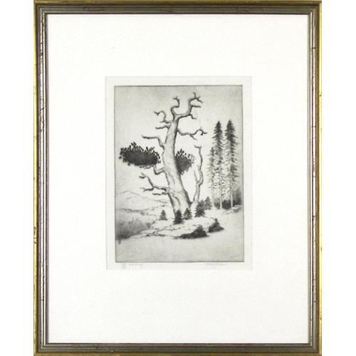 Lester E. Varian (1881-1967) Etching, Tree in Landscape, image size 10 5/8" x 7 5/8", pencil signed