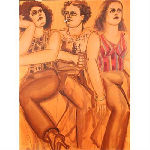 Lester Johnson began his painting career as an abstract expressionist, but in the mid-1950s abandoned that style for a distinctive figurative approach in which he pays homage to the modern everyman. Using a somber, limited palette-often only brown, black and dull blue-and applying his paint thickly, he produces strong, powerful canvases which convey a sense of the isolation of the individual.