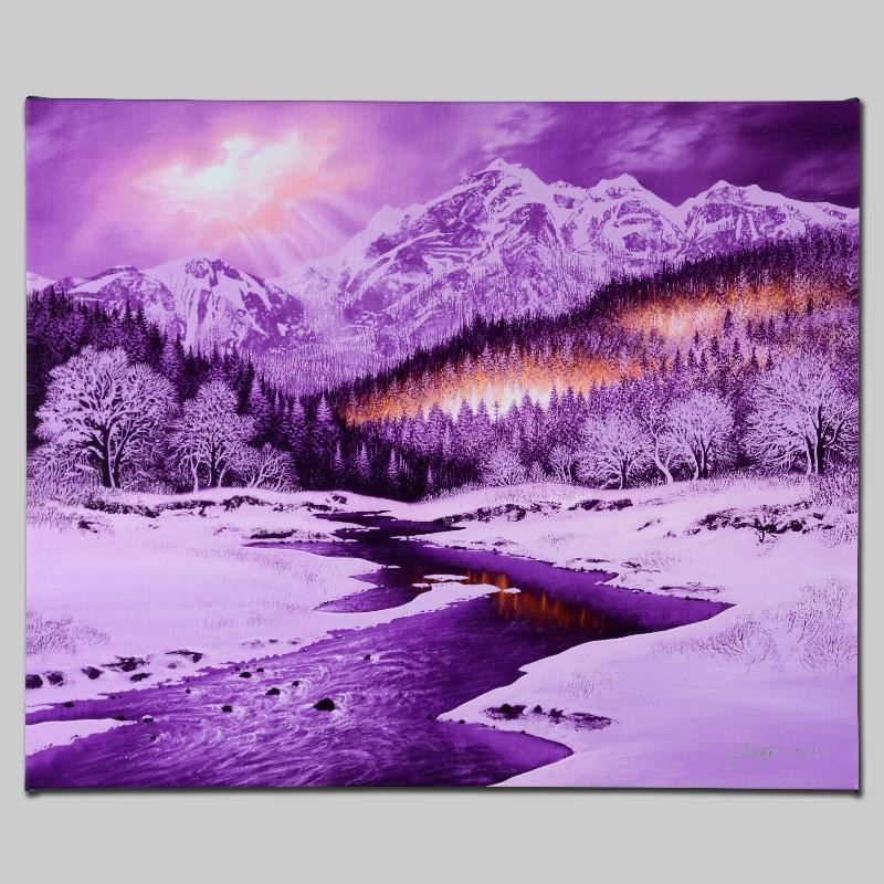 With an impeccable talent for capturing light and shadow, Jon Rattenbury creates luminous landscapes that are replete with bright colors and intricate details. "Let There Be Light" is a limited edition giclee on canvas, numbered and hand signed by Rattenbury! This piece comes gallery wrapped. Includes Certificate of Authenticity! Measures approx. 24" x 20" (image).