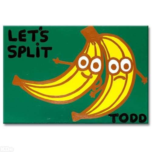 ADD THE IRREVERENT ARTWORK OF WORLD-RENOWNED ARTIST TODD GOLDMAN TO YOUR COLLECTION! Pop artist Todd Goldman is known all across the globe for his whip-smart and wickedly funny puns and pictures! "Let's Split" is an original acrylic painting on stretched canvas, hand signed by Goldman. Includes Certificate of Authenticity! Measures approx. 36" x 24" (image).