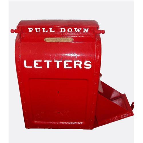 The top mail slot opens for letters to be inserted. It has been repainted a vibrant red and white. I am selling another one that is slightly different and the two look great together! Check out my other inventory to see it. You can see a picture here with both mailboxes together (this one is on the right).