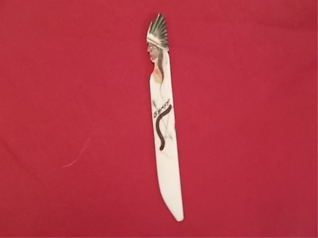 5 ¼” celluloid letter opener probably a souvenir from Banff National Park in used condition. From the collection of Good Time Charlie Cartwright, legendary tattoo artist famous for black and grey tattoo artistry. Charlie admired the American Indian and collected the image of American Indians and Western hero’s for 40 years. The collection has more ‘Indian Kitsch’ than ‘Route 66’ in the 1950’s. See Charlie in the soon to be released movie, ‘Tattoo Nation’. All measurements are approx. tracking #14