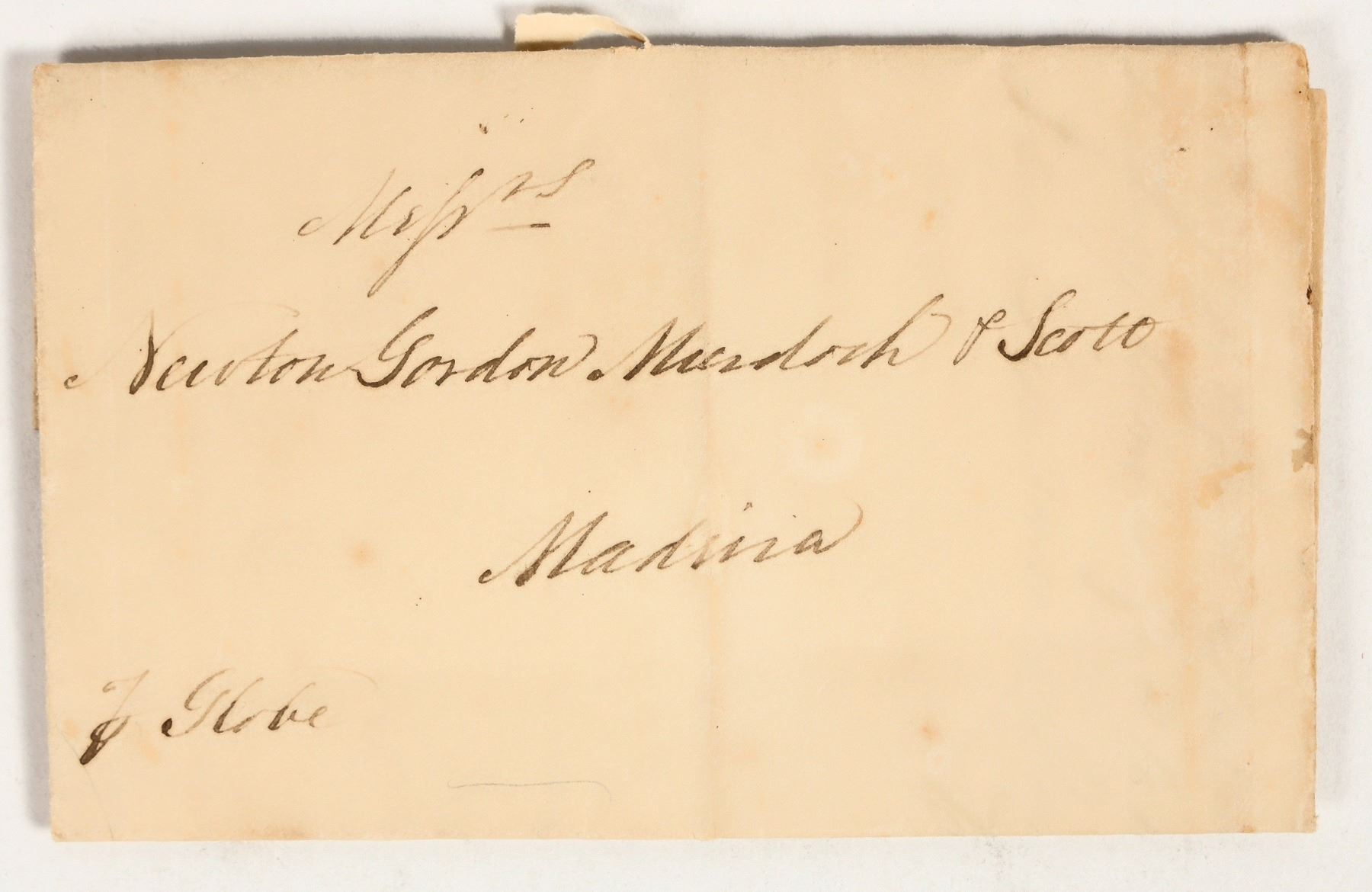 A letter hand carried from Boston Mass. to Madeira island merchant Newton and Gordon of New York regarding a shipment of wine delivered in good order to Commodore Perry during a re-supply stop. The remainder discuss good luck with business with America and bills and other matters.