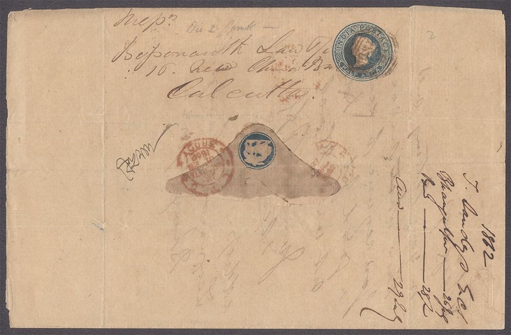 Victoria Queen, 1857, 1/2a, Letter Sheet, issued 1857 Sept 15, tied withnumericalpost mark, Special Red Post Mark 3rd Delivery,Excellent Condition,Extremely Rare.