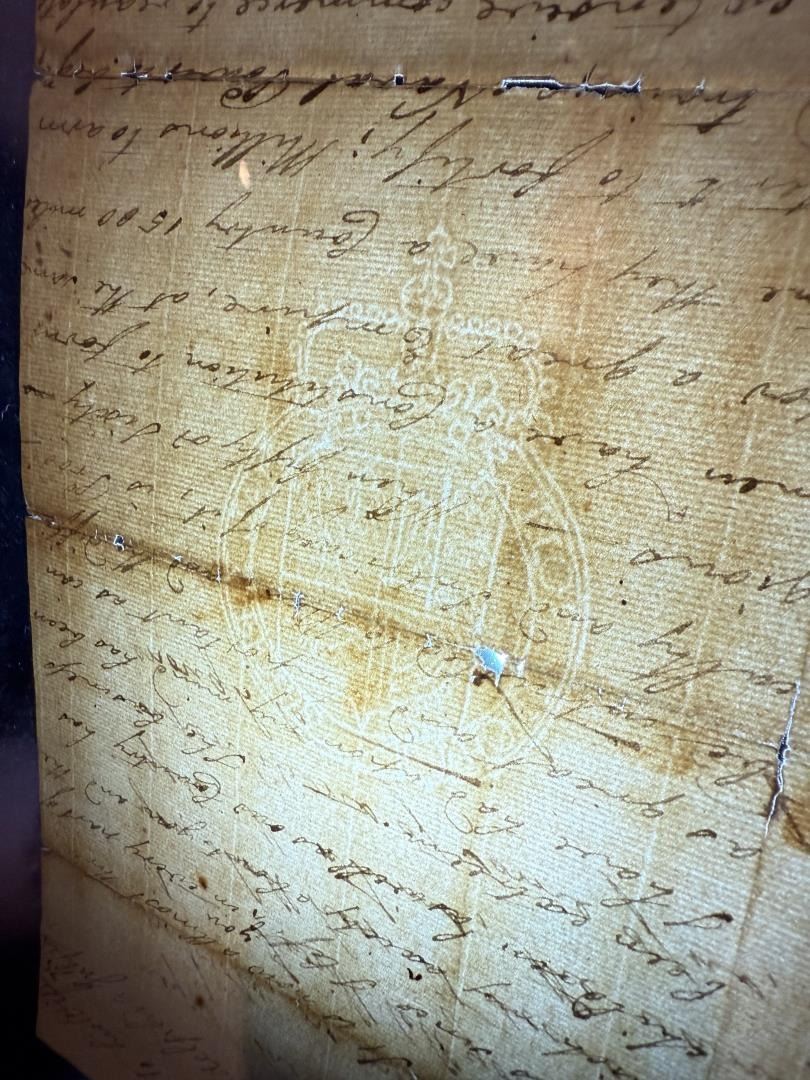 Original notation of publication can be found on founders.archive.org. To the best of our knowledge this letter appears for all intents and purposes to be a British made transcription of the letter, made the day the original was captured by the British. Notated on the founders site it mentions that the original letter was never accounted for, and was more than likely "It may have been given to the printer, who in good 18th-century fashion, saw no need to preserve it once his type had been set". This letter bears the watermark shown, as is referenced to in literature regarding American Revolutionary correspondence (Great British Coat of Arms 1714-1800). Letter is 7 1/4" by 12" in size.