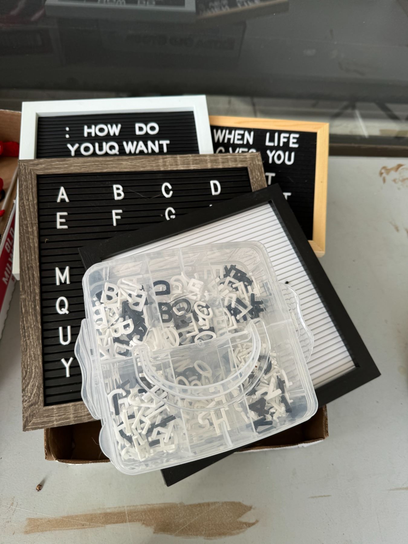 Letter signboards with letters