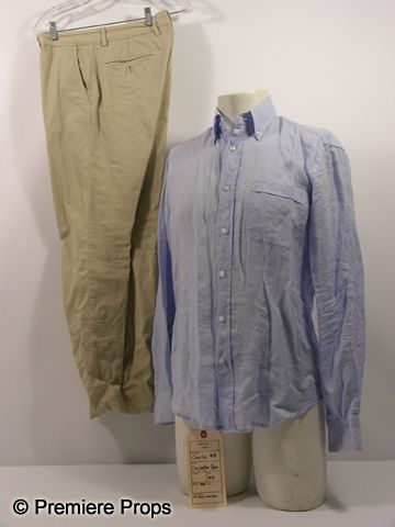 Letters to Juliet - Charlie (Christopher Egan) screen worn, hero, long sleeve blue linen, button front with collar 'Blunauta' dress shirt, (size 39). Pants not included. Includes wardrobe tag!