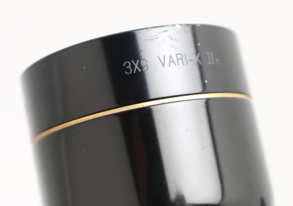 Leupold Scope 3X9 VARI-X IIc. Black Gloss finish with clear lens, some edge wear and minor scratch on top back of ocular lens body. Comes with cloth and factory box. Condition is very good.
