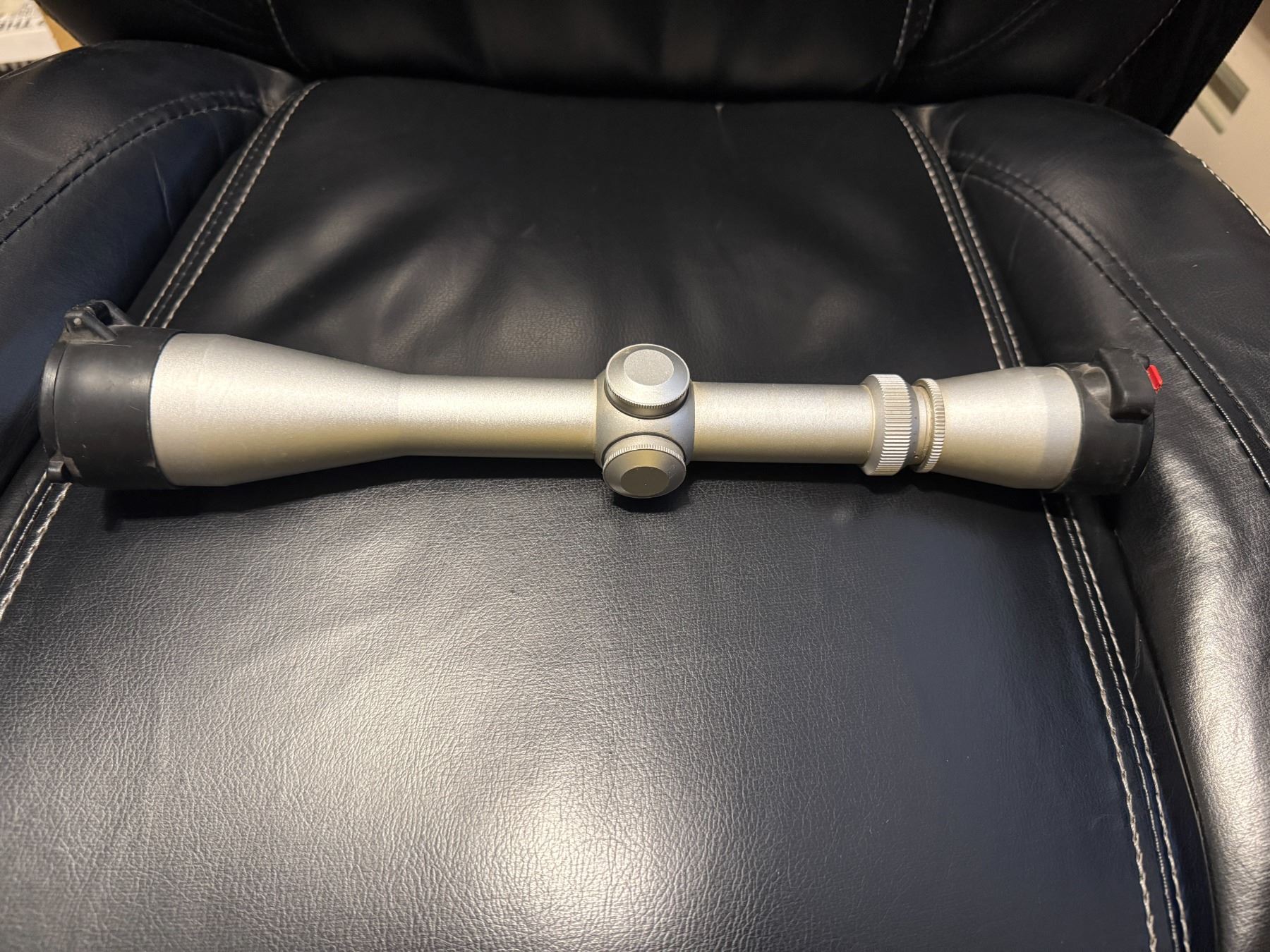 High-quality Leupold riflescope, made in the USA, featuring a desirable silver (matte stainless) finish. This optic also comes with Butler Creek flip-up scope caps installed on both ends—an excellent upgrade for keeping lenses clean and protected. Serial: 203122D
