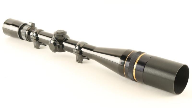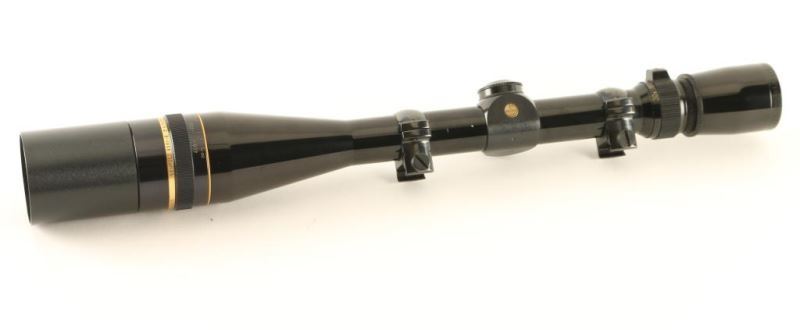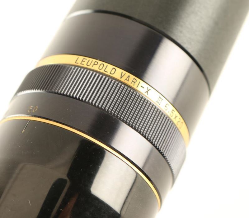 Features a glossy black finish, 40mm objective lens, fine duplex reticle, parallax adjustment ring, 6.5-20 variable power, sun shade and weaver style rings. Scope body shows light wear and the optics are sharp. Condition is near Excellent.