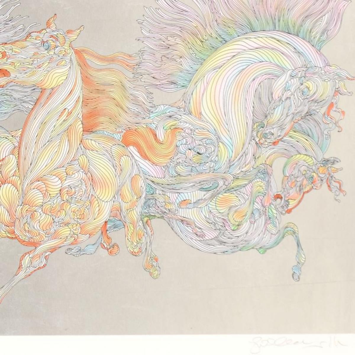 Lever De Soleil by Azoulay, Guillaume. "Lever De Soleil" is a limited edition serigraph on paper with hand laid silver leaf by Guillaume Azoulay, numbered and hand signed by the artist. Includes Letter of Authenticity. Measures approx. 38" x 27.5" (border), 32" x 22" (image).