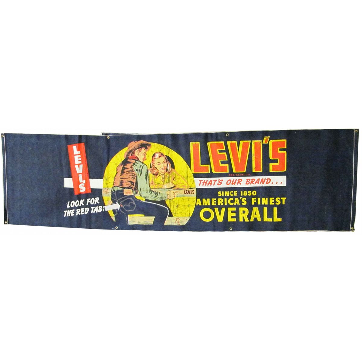 Levi Straus "That’s our Brand" Denim Banner. Some dye discoloration otherwise very good condition. 9 feet wide X 29 1/2 inches tall.