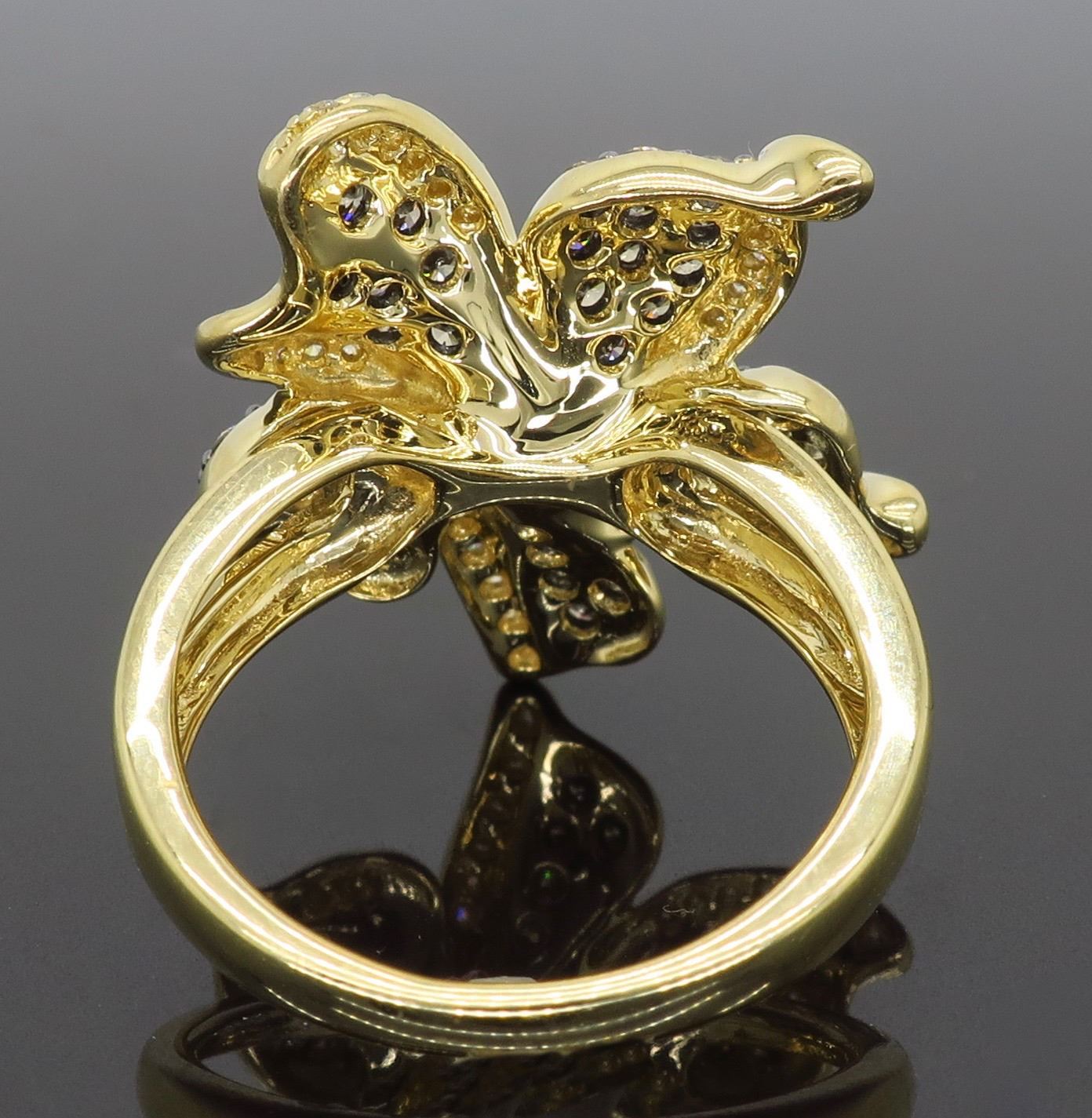 One Levian 14KT Yellow Gold 1.50ctw Diamond Ring. (39) Round Chocolate Diamonds and (31) white round Diamonds with a total weight of 1.50cts with a average clarity of SI-1 to I-1. Total weight of this ring is 7.4 grams. Ring size is 7.