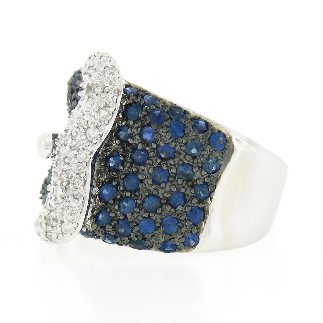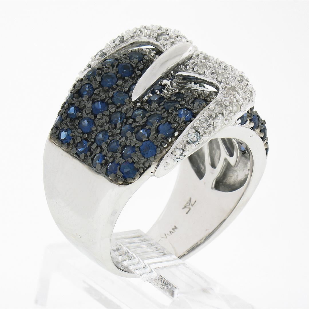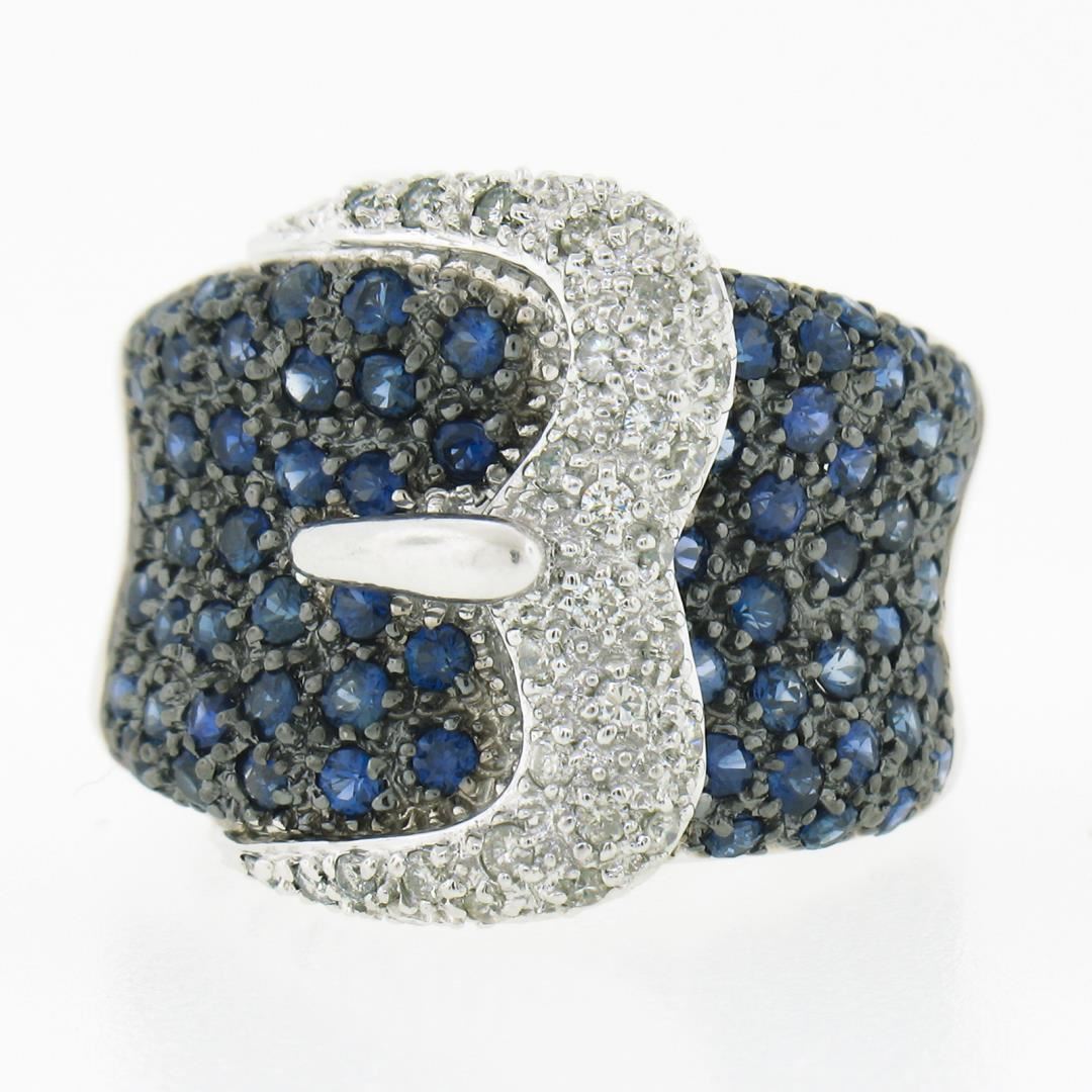 Levian 18k White Gold 1.80 ctw Pave Set Sapphire & Diamond Large Wide Buckle Rin