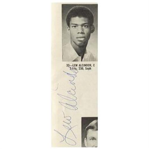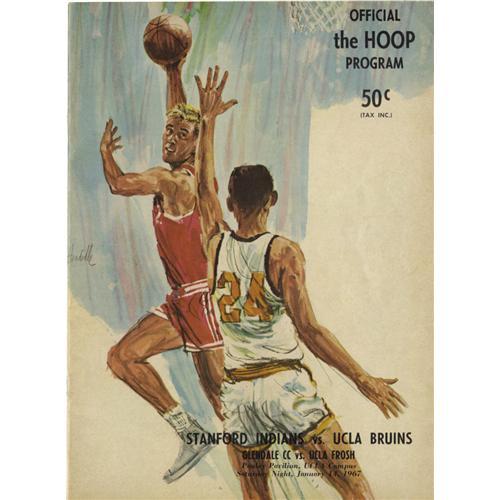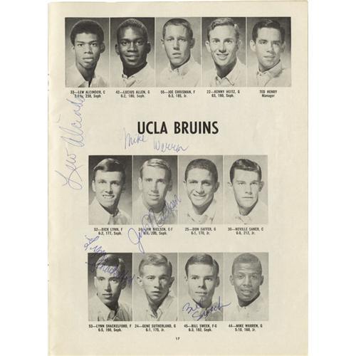<B>1967 Lew Alcindor Signed UCLA Basketball Program.</B></I> The career points leader of the National Basketball Association was just a nineteen-year old freshman for the UCLA Bruins when he signed this program for a young fan. Printed for a mid-January meeting with the Stanford Indians (now the Cardinals), the program remains in wonderful condition today, with no problematic stains, tears or creasing. Three Stanford players, and four members of the future Kareem Abdul-Jabbar's team, have signed as well. <I>LOA from PSA/DNA.</B></I>