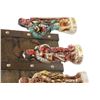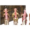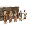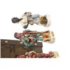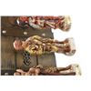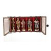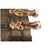 Each figurine is nicely detailed, no damages have been noted. The wood case resembles the type of travel cargo boxes that were used during that era and has carved wood initials "L" and "C" on its top. Hinges are in good working order, decorative chains are secured with brass coloured tacks and the top cover hasp securely closes the case. The two interior wall illustrations are of words honoring the expedition and a map of the route taken.