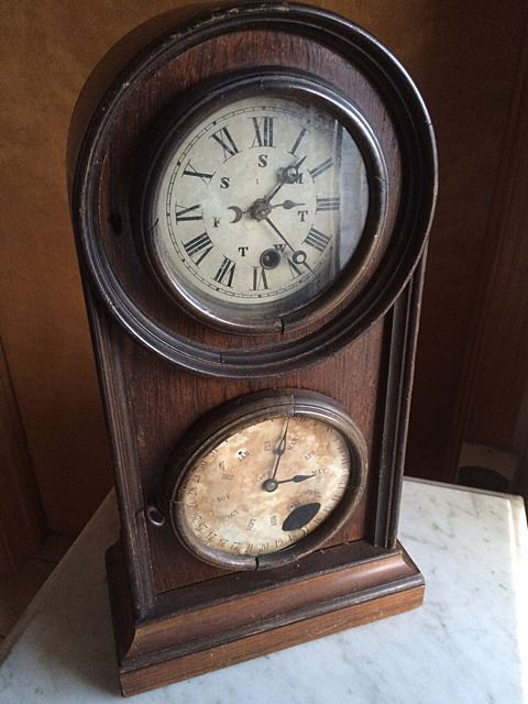 Lewis's Perpetual Calendar Clock, beautiful rare vintage calendar shelf clock. From 1868 to 1884, Elisha N. Welch (1809-1887) formed a subsidiary company called Welch, Spring & Company which would manufacture more expensive models of clocks. The company was formed by three clock enthusiasts; Welch, Solomon Crosby Spring and Benjamin Bennet Lewis.
