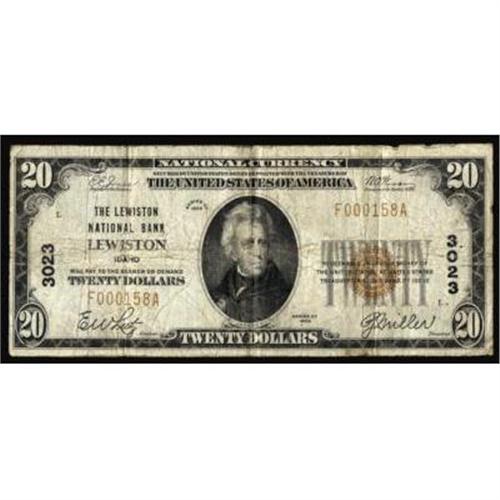 Lewiston, ID. $20 1929 Ty.1. The Lewiston NB. Charter #3023. Very Good.