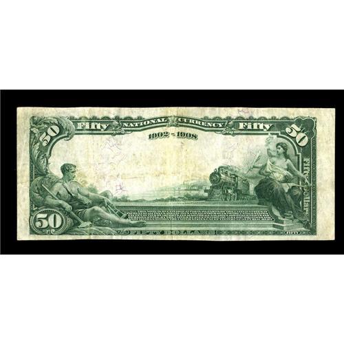 <B>Lewiston, ID</B></I> - $50 1902 Date Back Fr. 667 <B>The First NB</B></I> Ch. # 2972<BR>The bold signatures of Hawkinson and Clarke are complementary to the white paper on this high denomination example. A bright blue overprint also adds to the eye appeal. <B>Very Fine.</B></I><BR><BR><b>Shipping:</b> Coins & Currency (<a target="_blank" href="http://www.heritageauctions.com/common/shipping.php">view shipping information</a>)