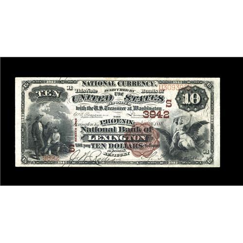 <B>Lexington, KY</B></I> - $10 1882 Brown Back Fr. 483 <B>The Phoenix NB</B></I> Ch. # (S)3942<BR>A high grade example from a scarcer Lexington bank which issued Brown Backs and Third Charter Date Backs only. Sharp <B>Very Fine-Extremely Fine.</B></I>