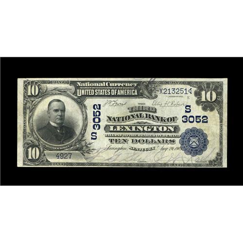 <B>Lexington, KY</B></I> - $10 1902 Date Back Fr. 616 <B>The Third NB</B></I> Ch. # (S)3052<BR>This nice <B>Very Fine</B></I> note bears the scarcest of the three titles under which this institution issued large notes. It is the only $10 Date Back with this title documented in the census and should attract a strong bid, both on the basis of its scarcity and overall attractive appearance.
