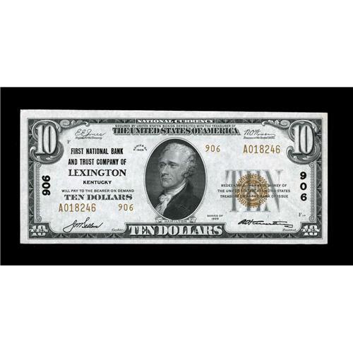 Lexington, KY - $10 1929 Ty. 2 First NB & TC Ch. # 906A Lexington, KY
