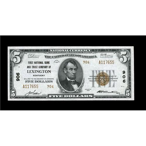 Lexington, KY - $5 1929 Ty. 2 First NB & TC Ch. # 906A Lexington, KY