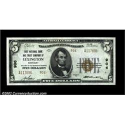 Lexington, KY - $5 1929 Ty. 2 First NB & TC Ch. # 906Well centered Gem Crisp Uncirculated. Important notice: We expect to be auctioning lots at the rate of 200-250 per hour. Sometimes eBay Premier live bid software cannot keep up with that pace, so we strongly recommend that you place a realistic proxy bid now as insurance to avoid disappointment. Also please note that all Heritage/CAA lots purchased through eBay Premier carry a 20% Buyer's Premium. Please make sure you read the Terms and Conditions.