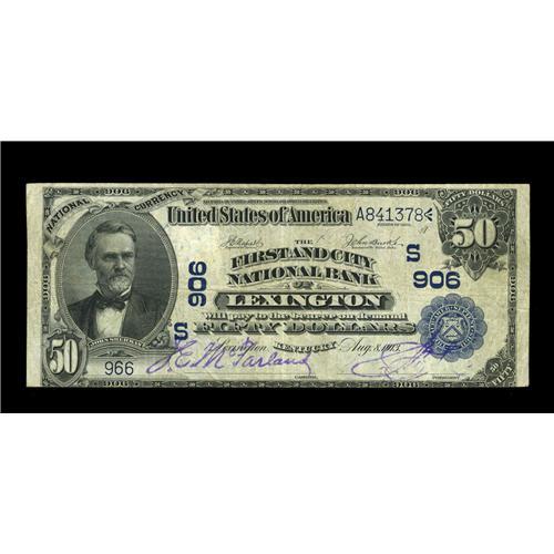 <B>Lexington, KY</B></I> - $50 1902 Date Back Fr. 673 <B>The First & City NB</B></I> Ch. # (S)906<BR>An attractive example of this scarce denomination. <B>Fine-Very Fine,</B></I> with purple signatures.