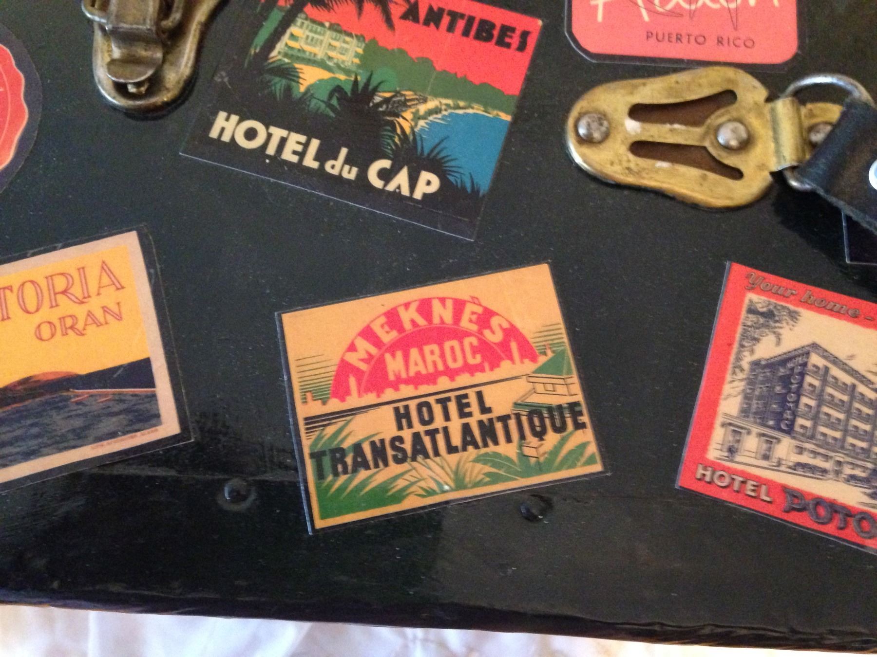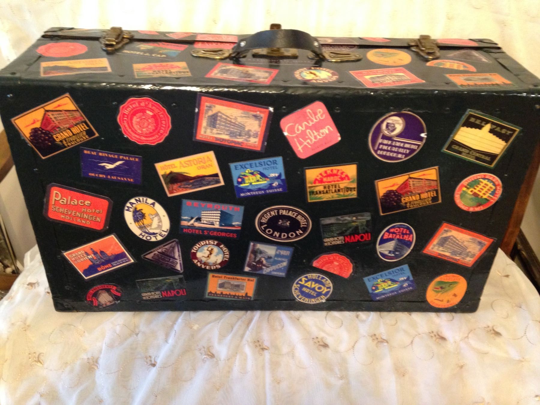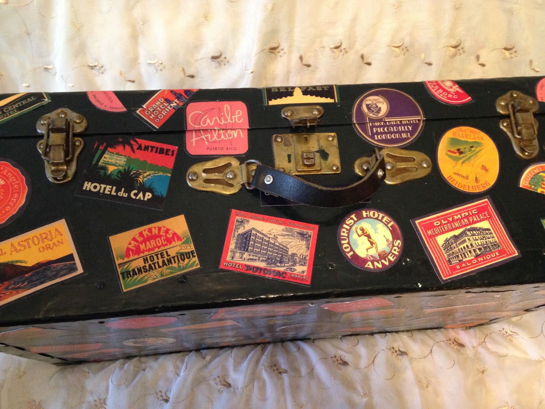 Lg 1940's Metal Suitcase w/ World Travel Decals 30"x17"x10"