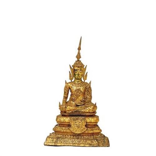 <tr><td>Title:Lg 19C Thai Burmese Gilt Bronze Seated Buddha</td></tr>
