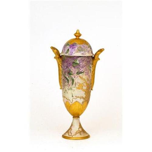 Large Antique Hand Painted Limoges Covered Jar with Relief Gold & Wisteria </p><p>
