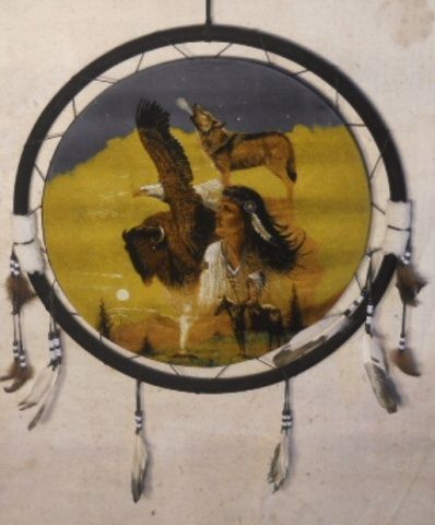 Lg. Dream Catcher Buffalo, Native American, & Wolf