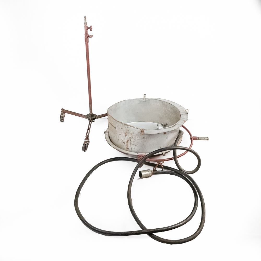 Great look in unrestored condition - great candidate for restoration. Male ends on both light and stand - comes with adapter. Measures approx. 29"Diameter and 13"Deep without harp.