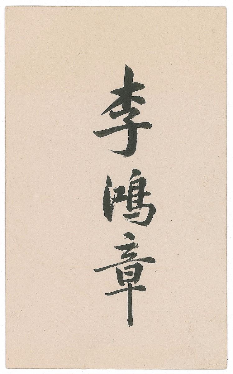Qing Empire general (1823–1901) who quelled several major rebellions and served as the premier viceroy of Zhili and the minister of Belyang from 1871 to 1895. Ink signature in Chinese characters on an off-white 2.75 x 4.5 card. In fine condition.